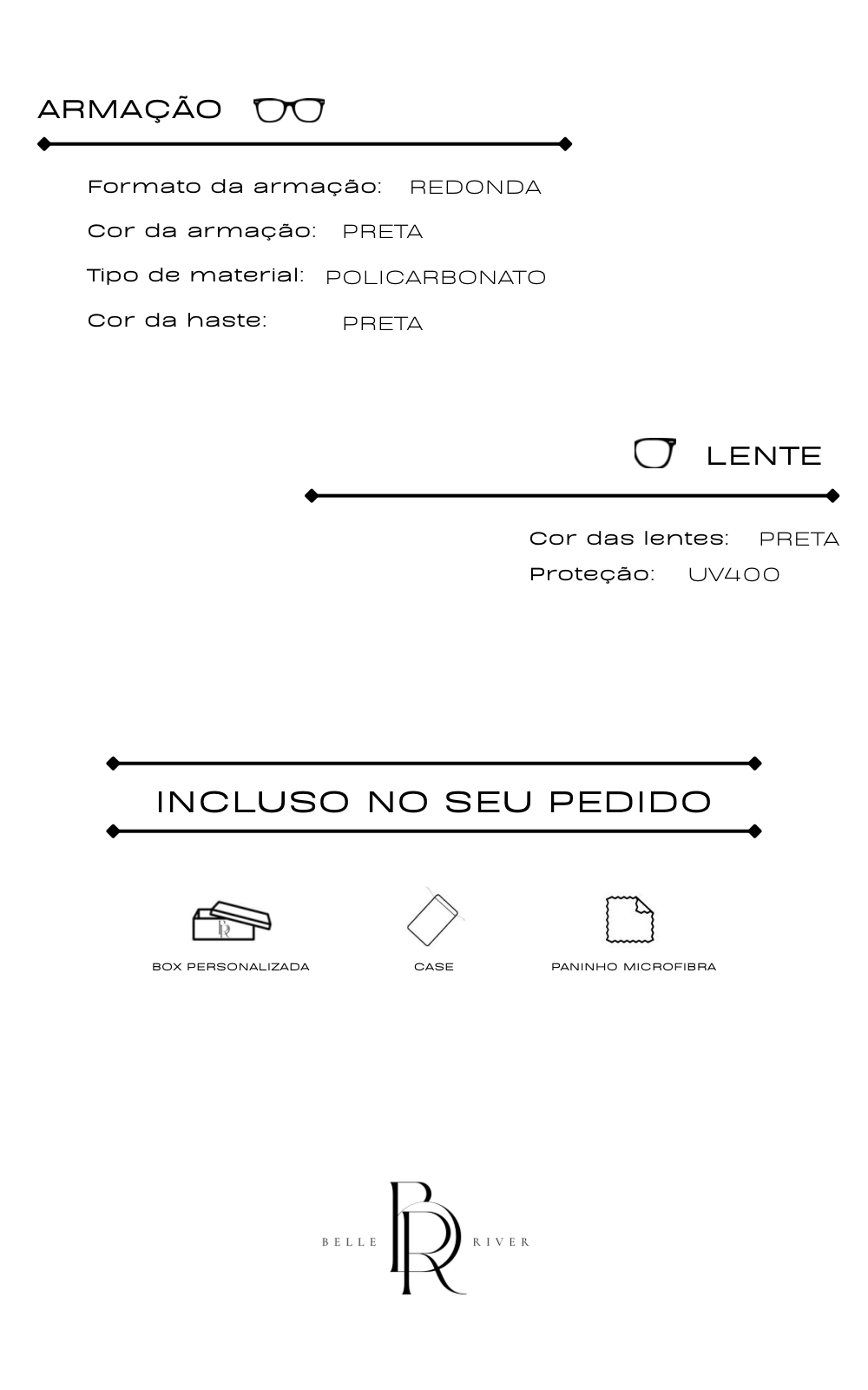 Com armação preta em acabamento acetinado, o modelo apresenta linhas arredondadas que equilibram suavidade e personalidade. As lentes escuras completam o visual com um toque moderno, oferecendo conforto visual e um estilo atemporal que combina com qualquer momento do dia.